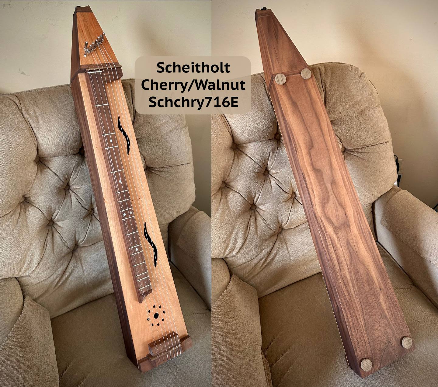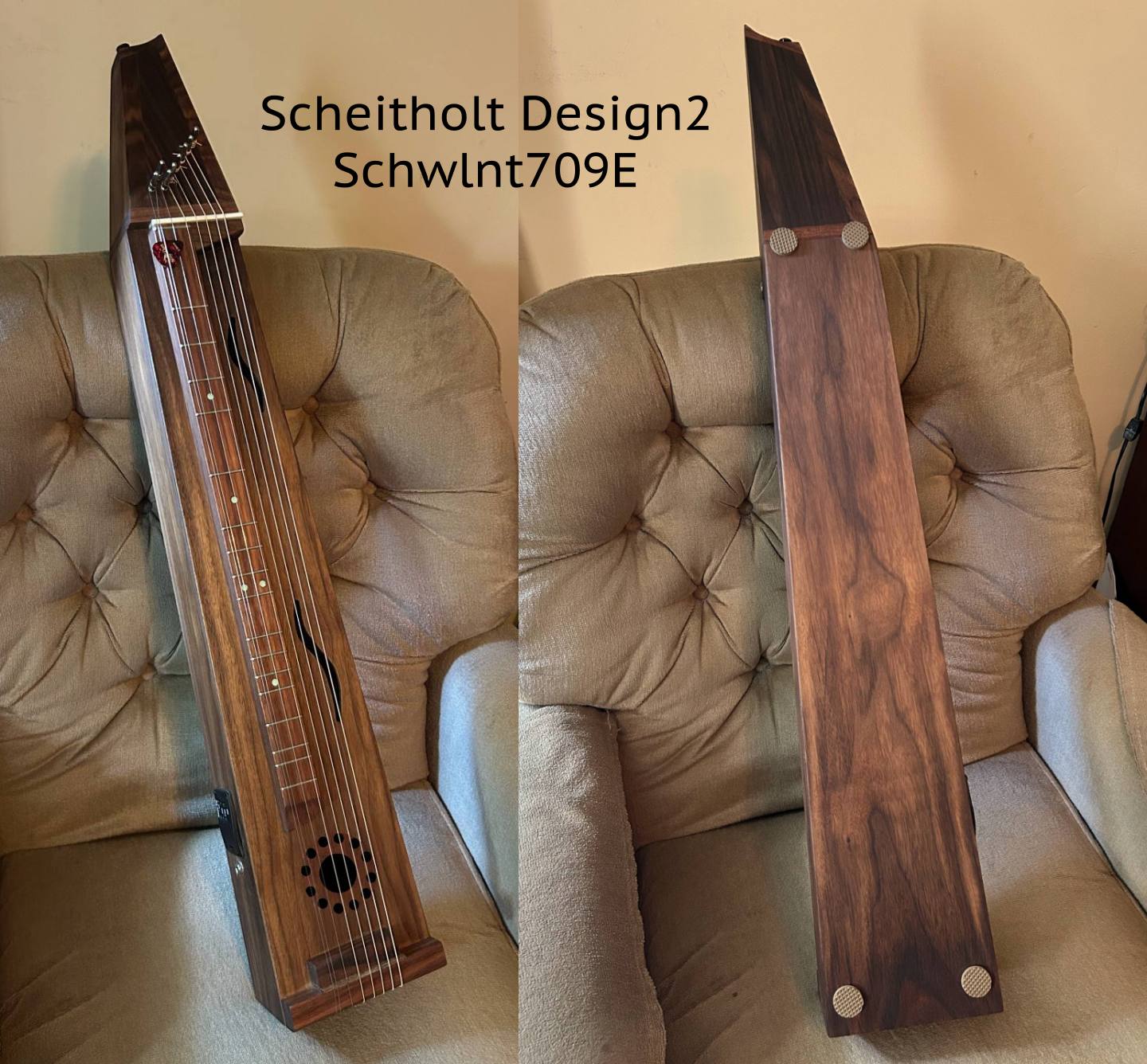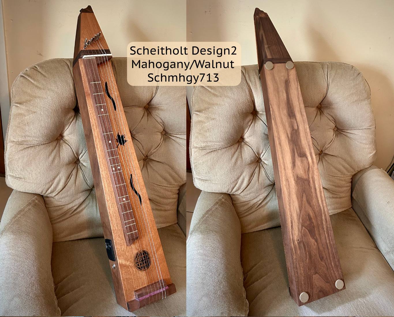 SCHEITHOLTS, ALSO KNOWN AS HUMMELS. MY DESIGNS HAVE 8 STRINGS, FOUR FRETTED, AND FOUR OPEN DRONES, AND MY RAISED DULCIMER FRETBOARD, 26.5" VSL. AVAILABLE WITH OR WITHOUT ON-BOARD ELECTRIC.
