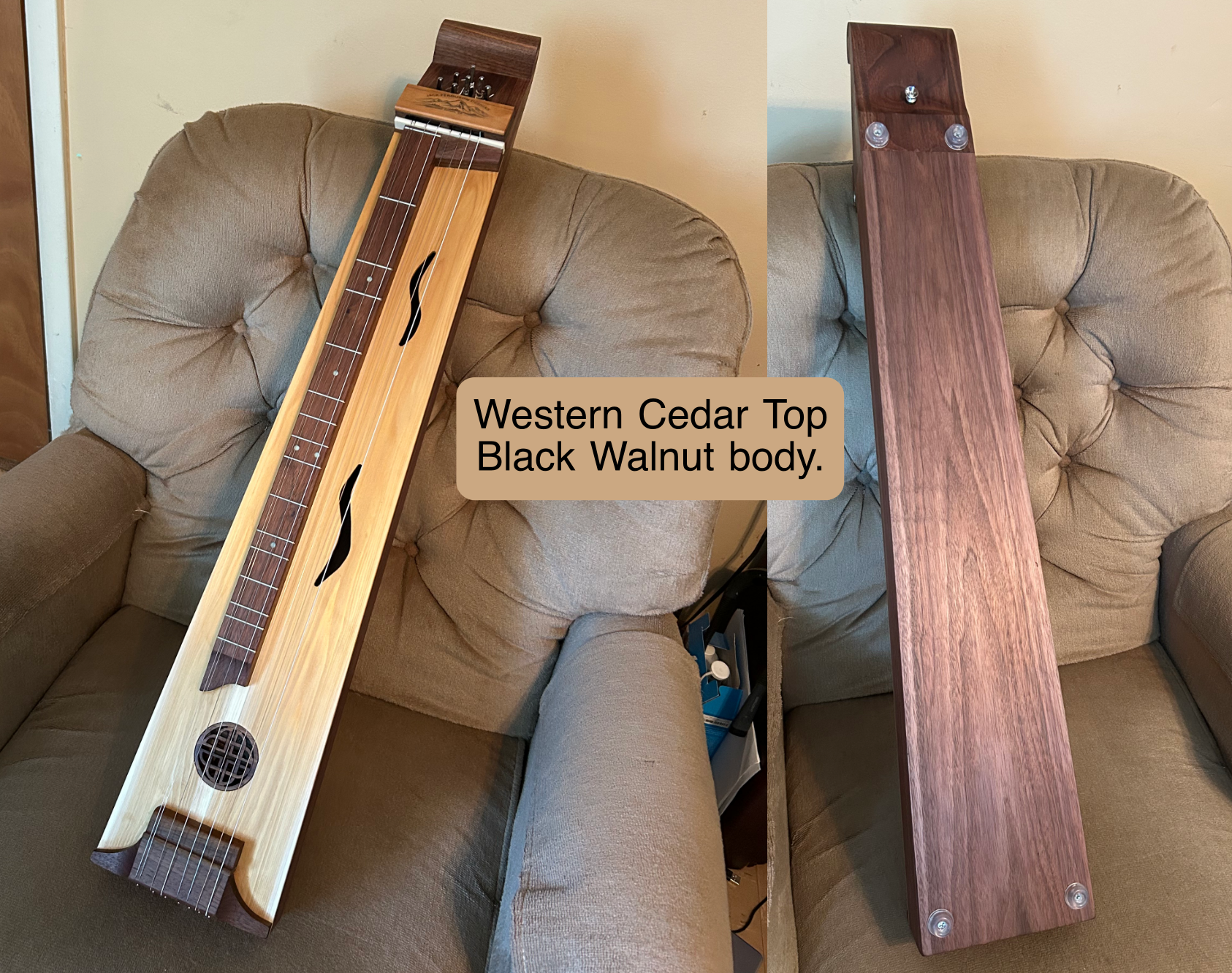SchwstcedarWestern Cedar top, walnut body. 8-string scheitholt, with or without electric.